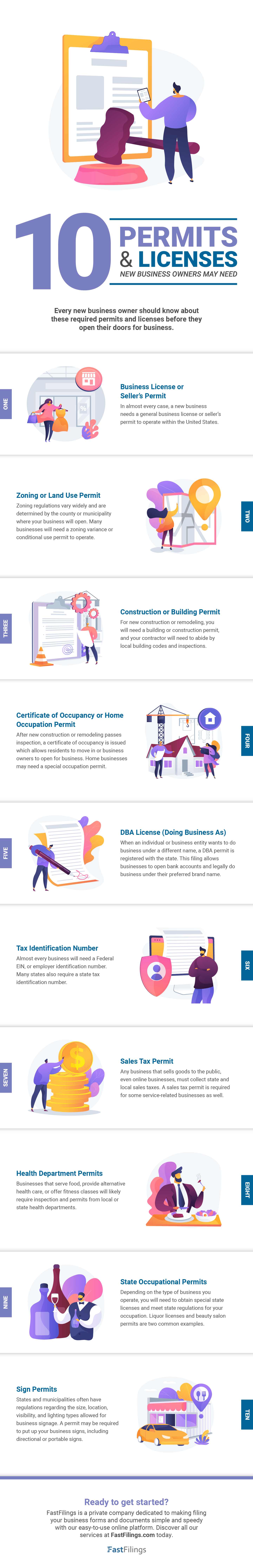 Be prepared and ahead of the game for your grand opening by obtaining these permits and licenses directly from government agencies or by using our private, convenient, online filing service. Have you applied for these 10 essential business licenses and permits?